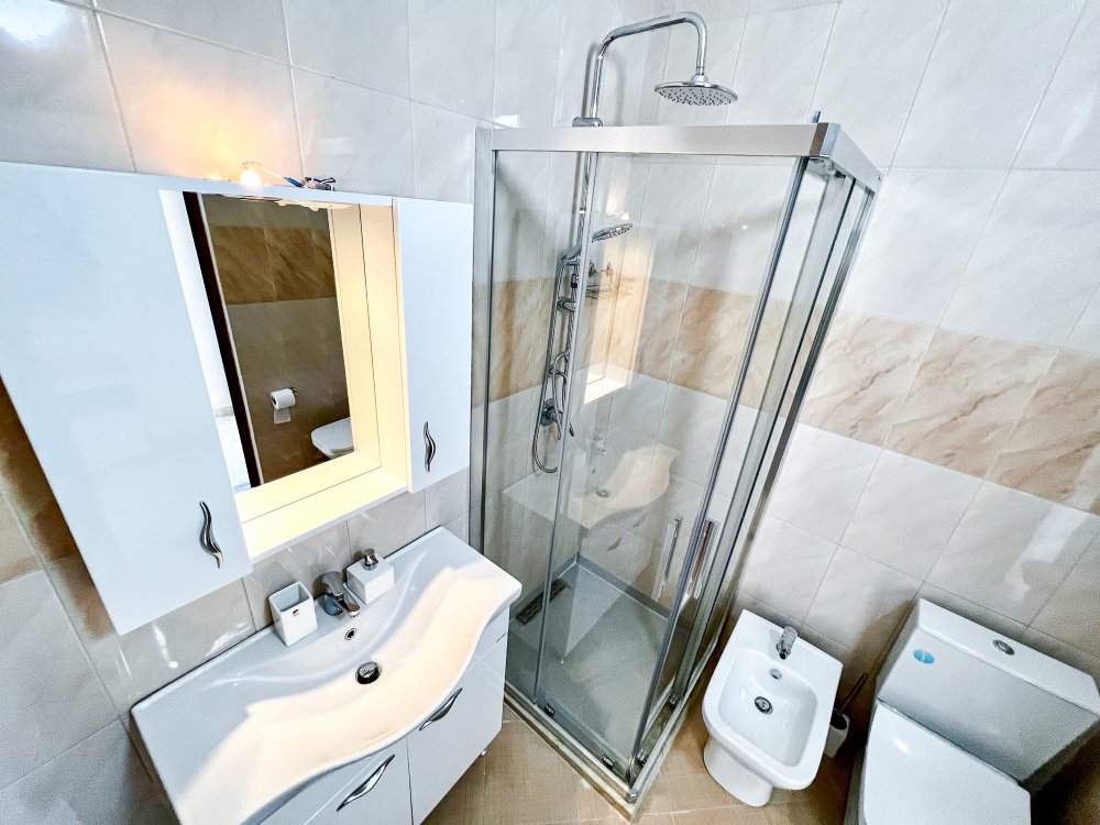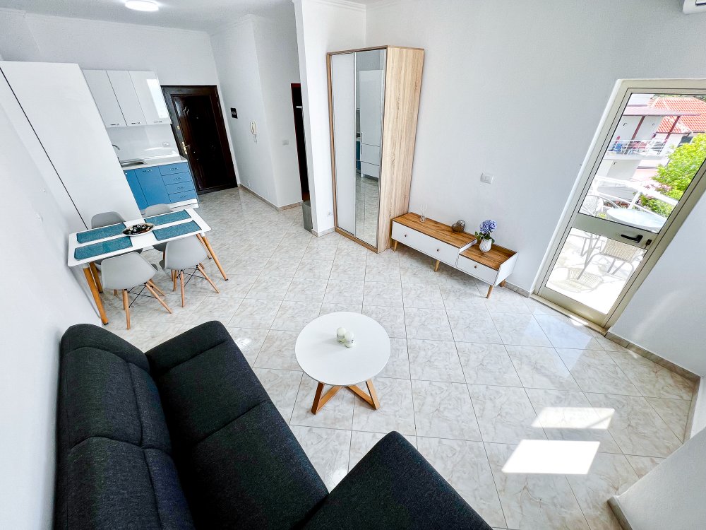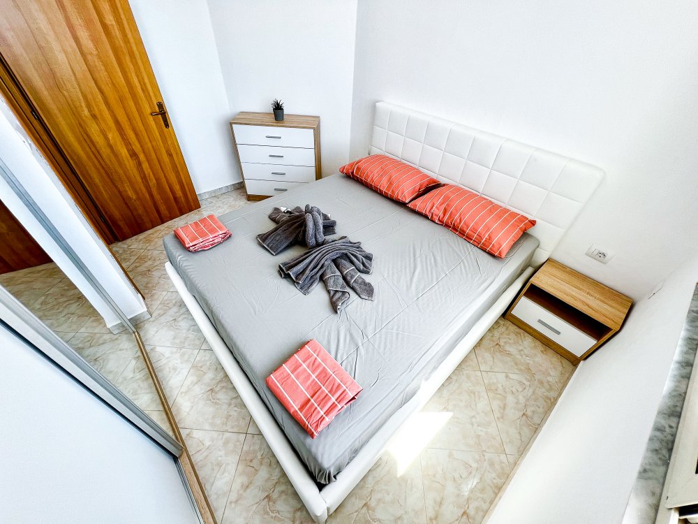 Klimatizovaný apartmán s balkónem. Tento apartmán má jednu samostatnou ložnici, obývací část se sedačkou a TV, plně vybavenou kuchyň a koupelnu.