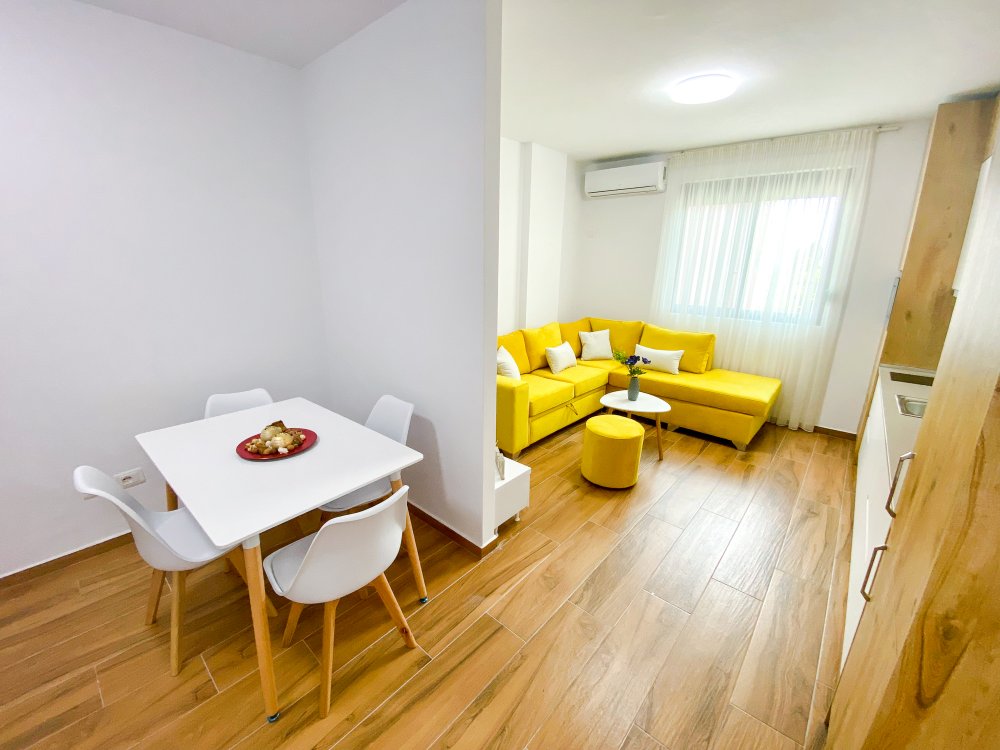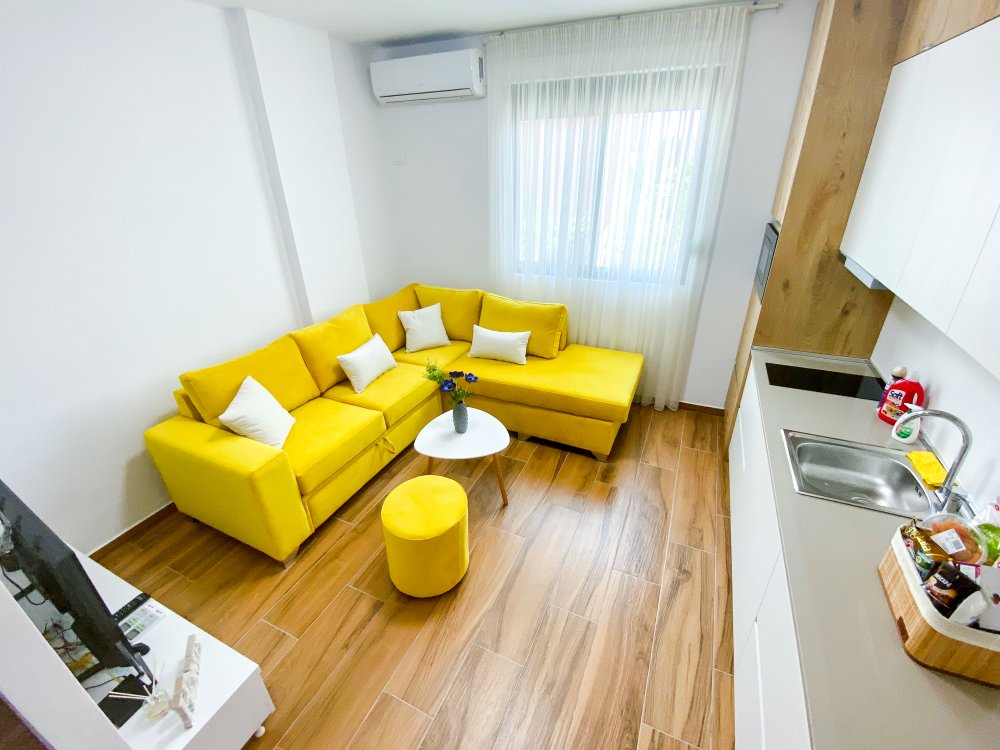 Apartmánové domy sú súčasťou moderného hotelového komplexu s komplexným vybavením vrátane bazéna a detského ihriska. Priamo oproti Shkembi Rock a Kavajes Ubytovanie v moderných kompletne zariadených apartmánoch s možnosťou využívať stravovacie služby hotela a bazén za poplatok. Krásna široká piesočnatá pláž s pozvoľným vstupom do mora s množstvom vodných atrakcií.