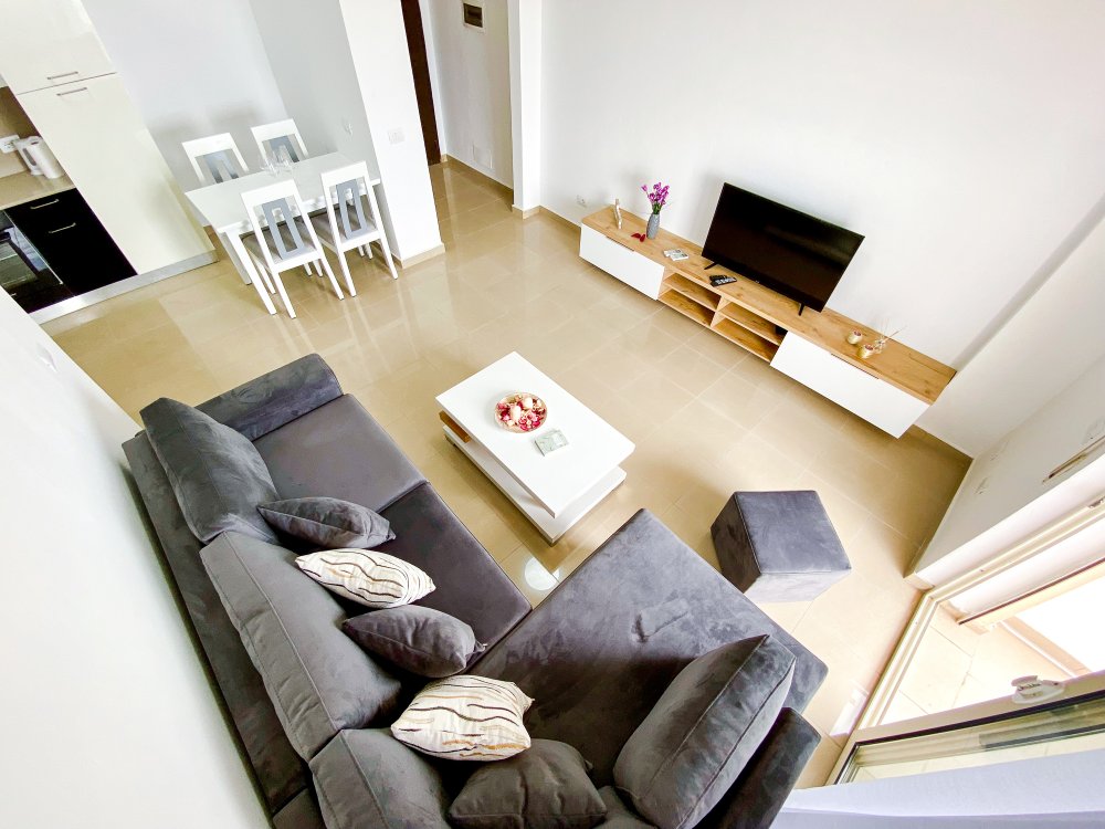 Tento klimatizovaný apartmán má balkón s výhľadom na more. Tento apartmán má jednu samostatnú spálňu, obývaciu časť s pohovkou a TV, kompletne vybavenú kuchyňu a kúpeľňu. Využívať môžete hotelový bazén.